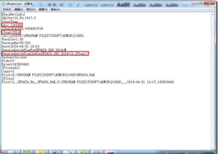 一、 用记事本打开年度账备份信息文件UfErpYer.Lst,查看账套号和年度账会计年度