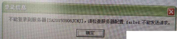 用友T3财务软件在打开财务报表的时候出现错误提示:不能登录到服务器[sa20150906jcnj],请检查服务器配置:failed:不能发送请求?