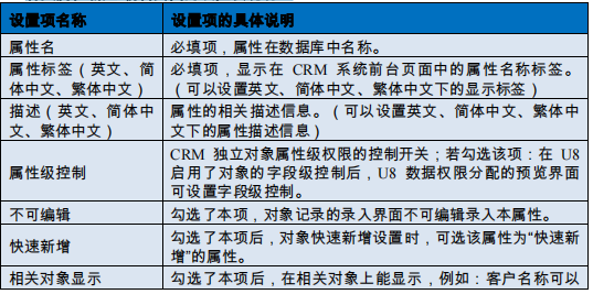 在用友 U8CRM 版中使用了以下 21 种属性类型。