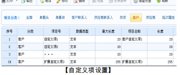 公共对象不能在 CRM 中添加自定义属性,只能在 U8 基础设置中维护自定义项和扩展自定义项,同步到 CRM 模块进行使用【菜单路径】:基础设置-基础档案-自定义项。点击进入自定义项设置节点。