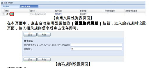 [保存]:保存编码规则信息,返回自定义属性列表页面。
