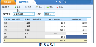  在辅助费用耗用表中允许录入各管理成本中心的服务消耗数量,系统将计算分配其应负担的服务成本并生成凭证。