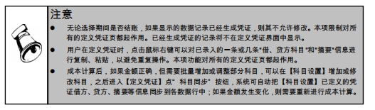 5)"将一张凭证中相同科目进行合并"是指选择该项功能后,系统将自动完成相同科目的合并。