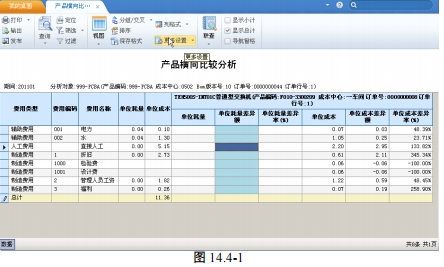 “ 产品横向比较分析” 提供用户比较各产品在同一会计期间之间的单位成本差异的功能。分析的结果以耗量或金额的差异额和差异率的方式表示。