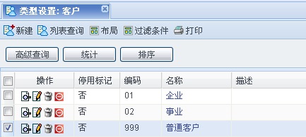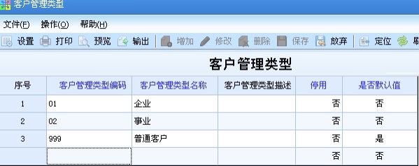 在客户管理类型档案中增加记录:
