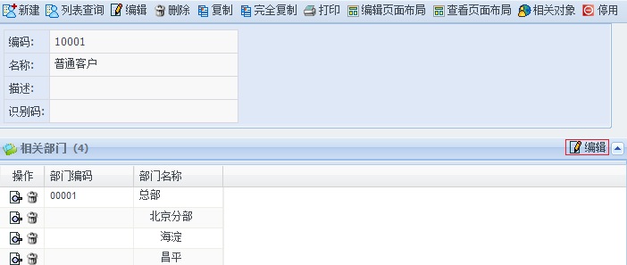 在相关对象下相关部门处点击“编辑”按钮,选择相应的部门即可。