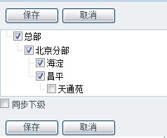 [同步下级]:勾选后点击保存按钮将同时保存已勾选部门的下级部门。