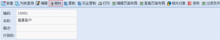 在客户分类的列表页面点击对应分类的 图标,或在相应客户分类查看页面点击[删除]按钮,即可客户分类记录。如下图