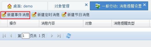 操作入口:客户化平台对象管理,点击相应对象操作栏的 图标,进入该对象的“自定义消息机制”页面。