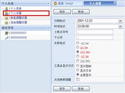 U8CRM系统桌面上的个人信息怎么修改和设定?