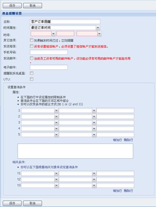 设置您所关心的系统信息, 用友 U8CRM 消息提醒分为事件、定时和节日三大类。