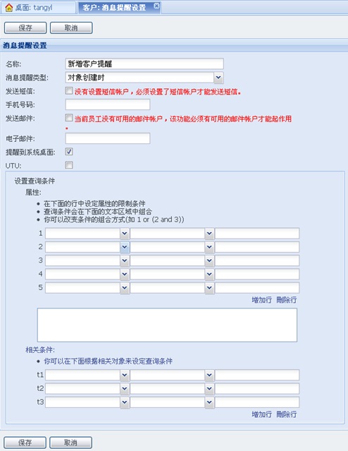 选中客户后点击[下一步]按钮,设定该订阅的名称,订阅消息提醒类型以及提醒方式,也可在下边的过滤条件中输入过滤条件,设置更加精确的提醒。设置完毕保存即可。