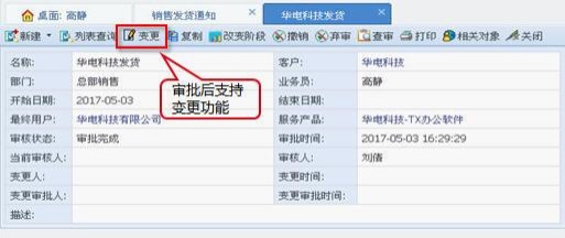 企业对单据启用了审批功能,审批后有变更单据的要求,并且变更后还需再审批。