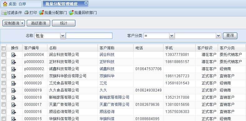[过滤条件]:显示批量分配客户的可供查询属性。