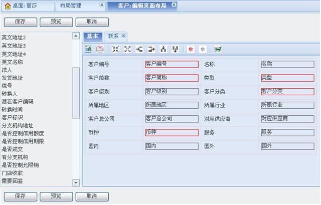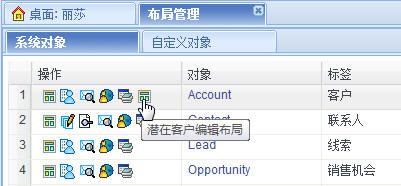布局管理,进入布局管理页面,点击客户à在系统配置中,点击菜单客户化平台对象对应的“潜在客户编辑布局”图标,进入潜在客户编辑布局设置页面,用户即可根据实际需要设置潜在客户的编辑页面布局。