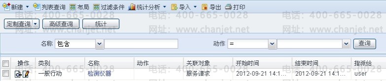 点击“服务”--“服务行动”进入服务的行动列表查看页面,查看与服务相关的行动信息。