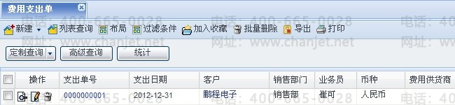[加入收藏]:打开加入收藏设置窗口,将指定的费用支出单信息加入收藏夹。