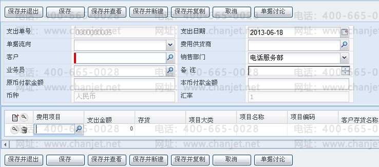 点击“新建”并选择支出单类型后进入新建编辑页面。