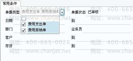 进行费用分析时,可以选择费用分析的范围,如支出单或报销单以及其它条件,