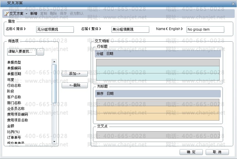 系统预置了 6 个查询的交叉方案,也可以根据实际需要自行定义交叉/分组方案