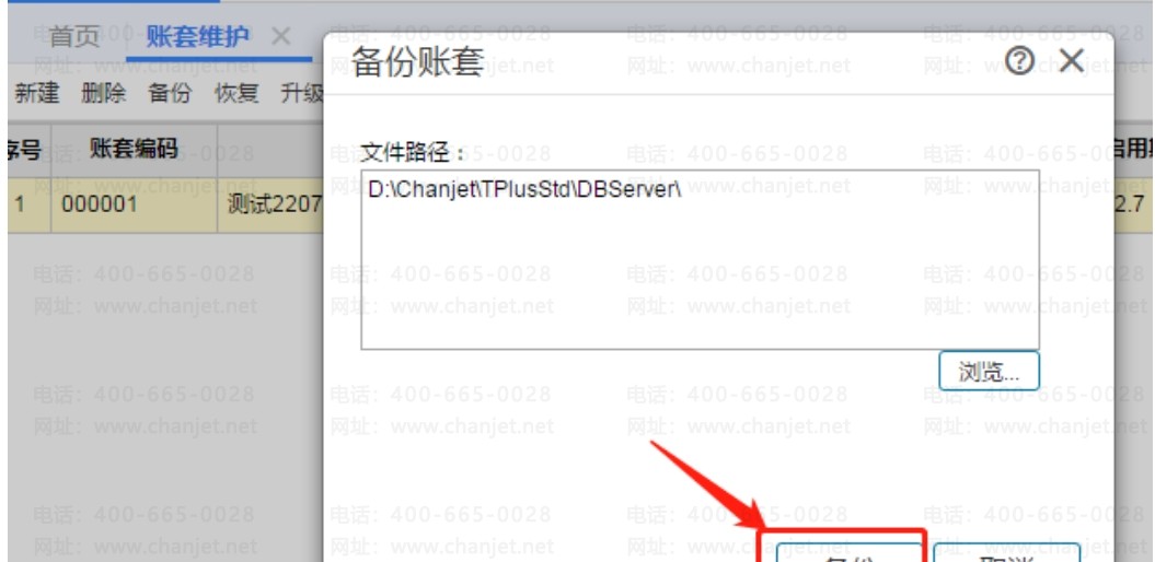4.选择好备份的路径,或者默认系统路径,并点击备份,如图下: