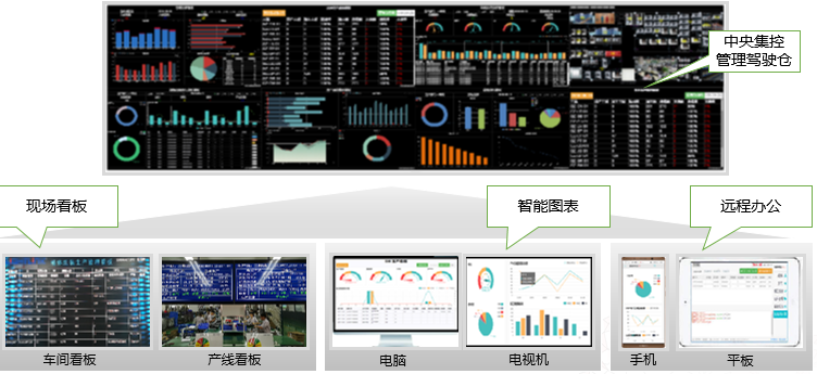 借助多种智能化数据采集模式(条码/RFID/IOT)及时准确获取车间加工生产进度、质量状况、人员绩效等数据,通过可视化看板随时掌握车间动态;
