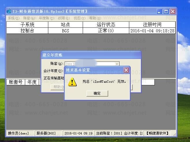 由于账套的数据库中缺少某张表或者字段,新建立年度账时无法正常的在这些数据库表中写入数据。