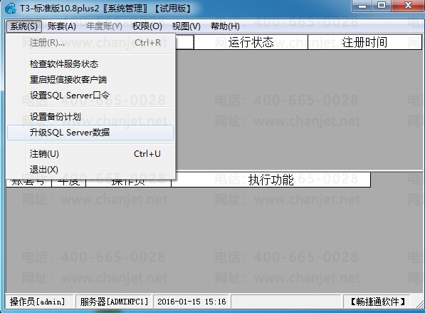 3、打开T3的系统管理,系统—注册—输入admin,点击登录: