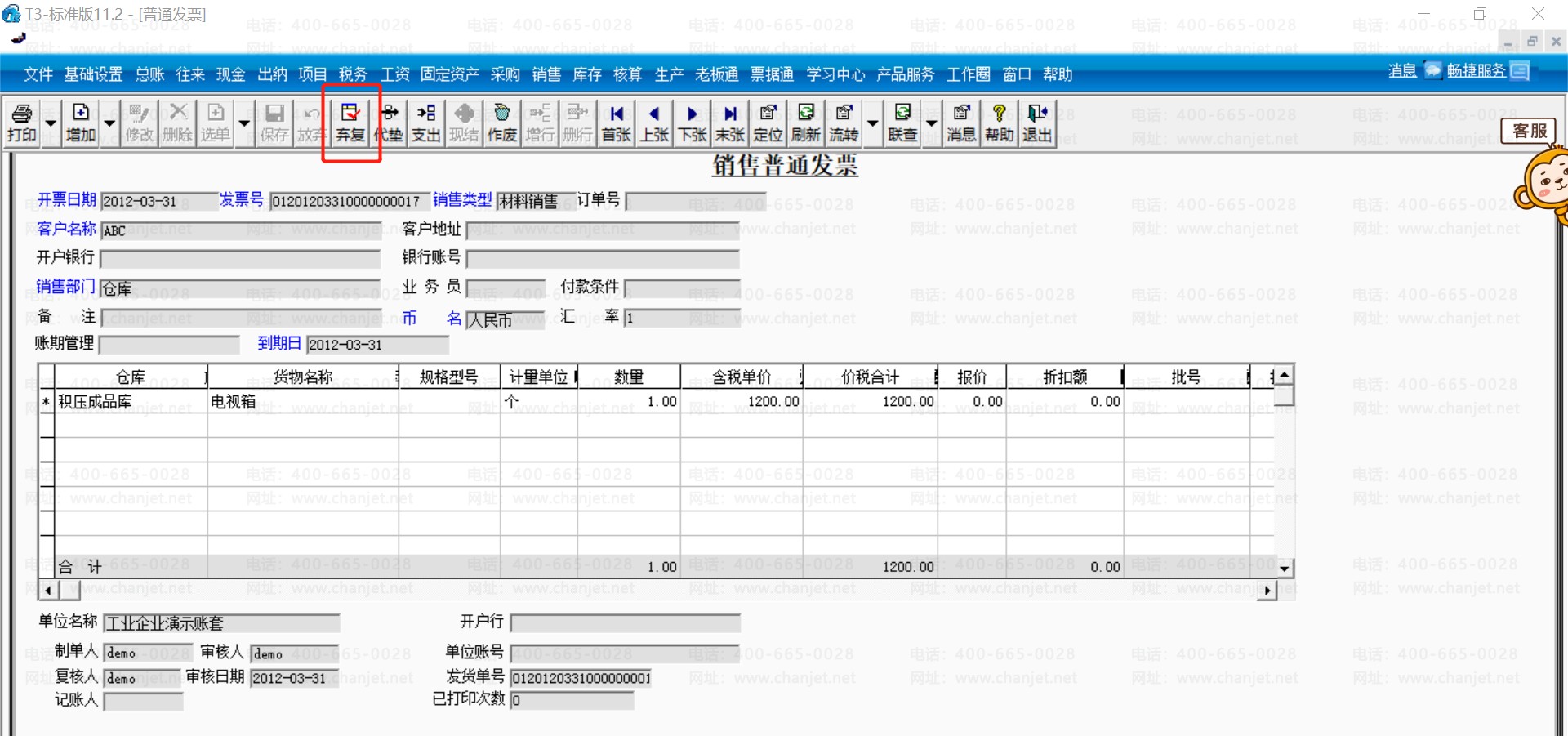2.检查发票是否审核,若是弃复的标识,则说明发票是已审的状态。