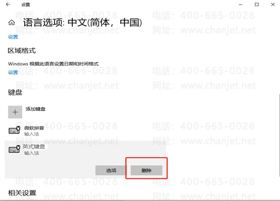 往下拉,在键盘中找到英式美式键盘,点击删除即可