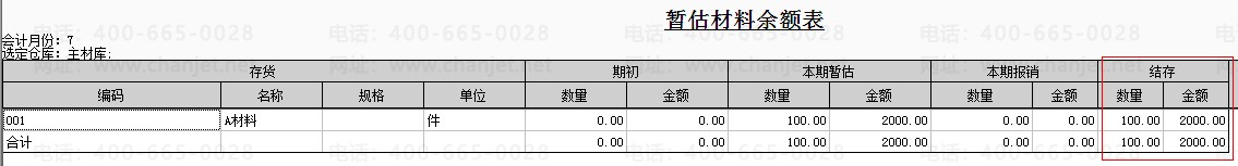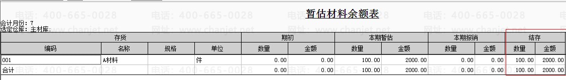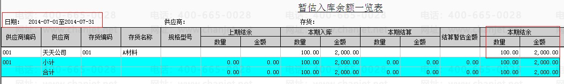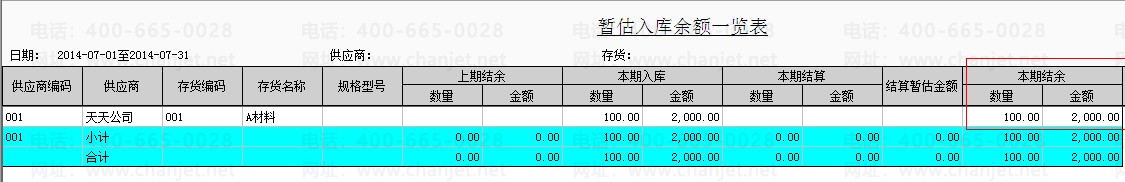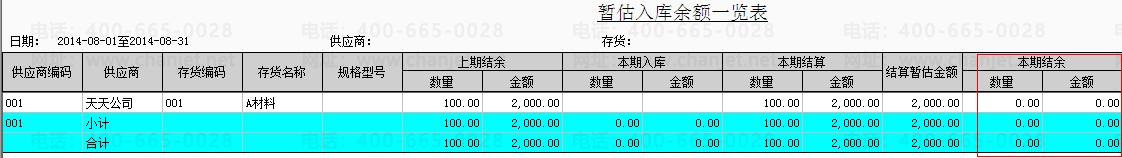 将该条采购入库记录在核算模块做正常单据记账后,在查看暂估入库余额表和暂估材料余额表。