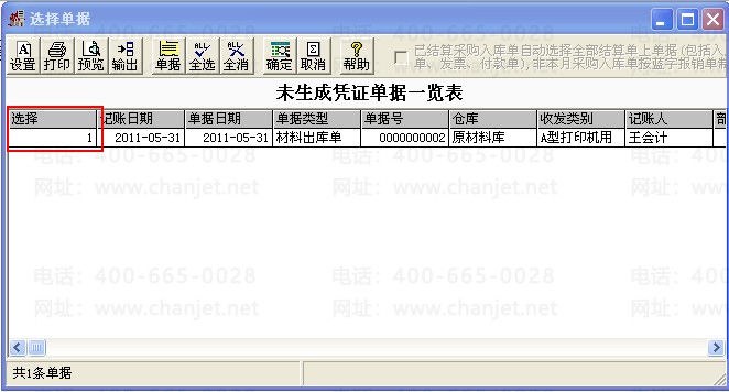 8、进入核算管理,点击“购销单据制单”,点击“选择”,勾选“材料出库单”点击确定;
