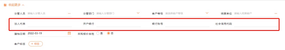 (2)基本信息:单位编码、单位名称、单位分类、简称、收款条件、付款条件、期初应收、期初应付、期初预收、期初预付、是否停用、区域(地区)、备注、分管人员、分管部门、建档日期、采购报价是否含税、附件、支持自定义字段;