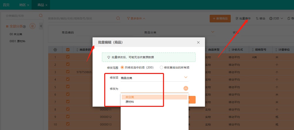 功能介绍:企业经营商品种类众多的情况下,通常会按品牌或品类等进行分类,便于后续的查找和按分类统计;