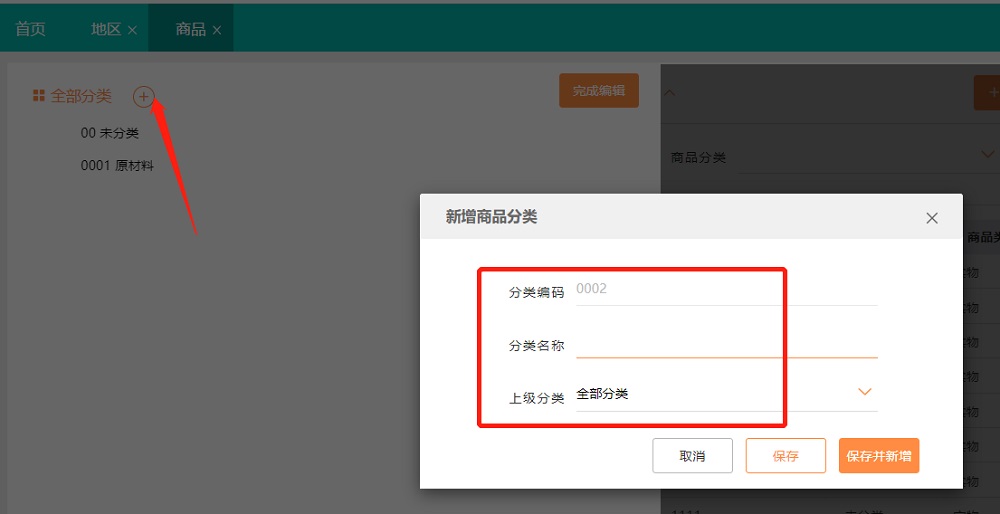 ①新增商品分类