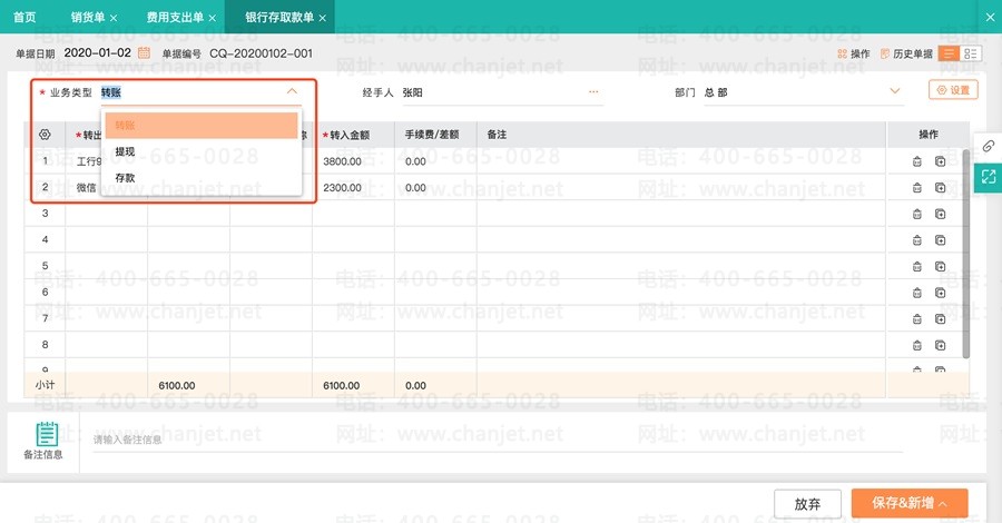 页面路径:1、资金管理->银行存取款单 2、首页->常用功能->银行存取款单