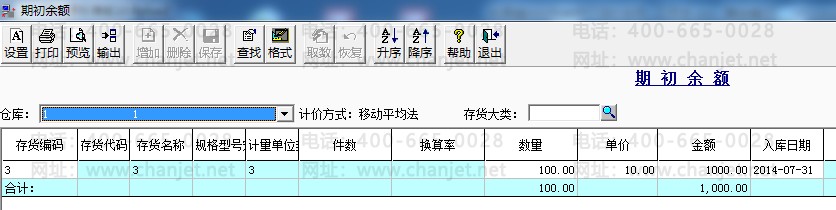库存期初: