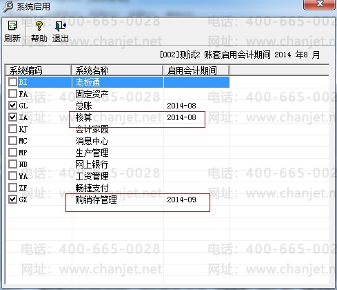 要求:8月份核算模块确认已结账,才能在系统管理9月份启用购销存。(若核算8月份不月结,即使在系统管理中选择购销存的启用日期为9月1日,但是启用后仍显示购销存启用会计期为8月)