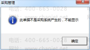 但是该单据不能打开查看,系统会提示“此单据不是采购系统产生的,不能显示”;