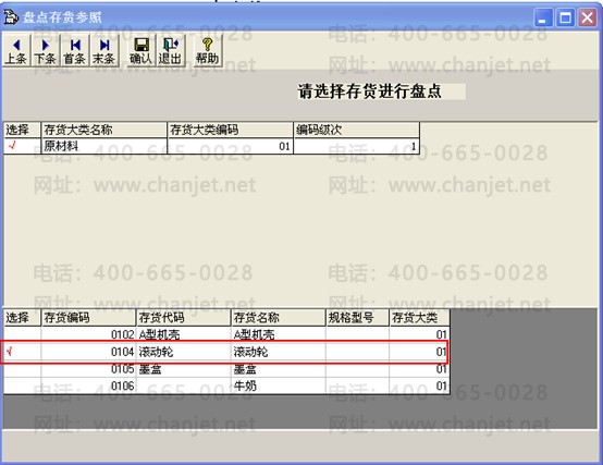 2、点击“选择”,选择滚动轮后点击“确认”,盘点数量输入12后点击“保存”,再点击“审核”;