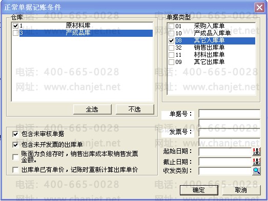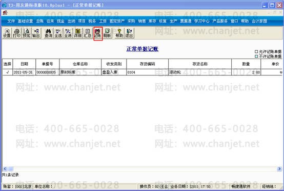 4、点击“正常单据记账”,选择“其他入库单”,点击“记账”按钮;