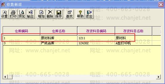 5、依次点击“核算”-“科目设置”-“存货科目”,仓库选择“原材料库”,存货科目选择“1211原材料”后点击“保存”;
