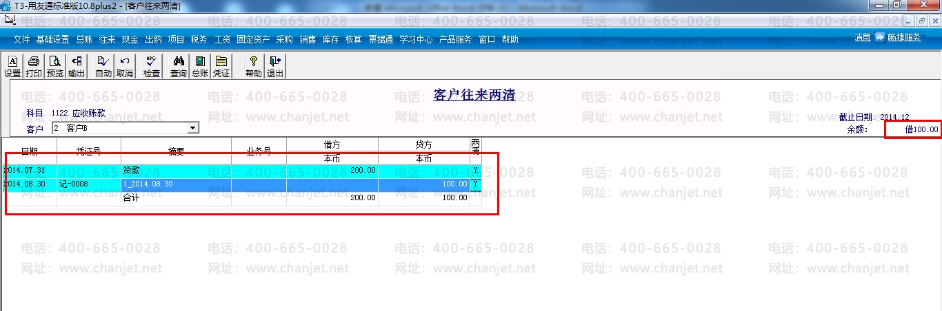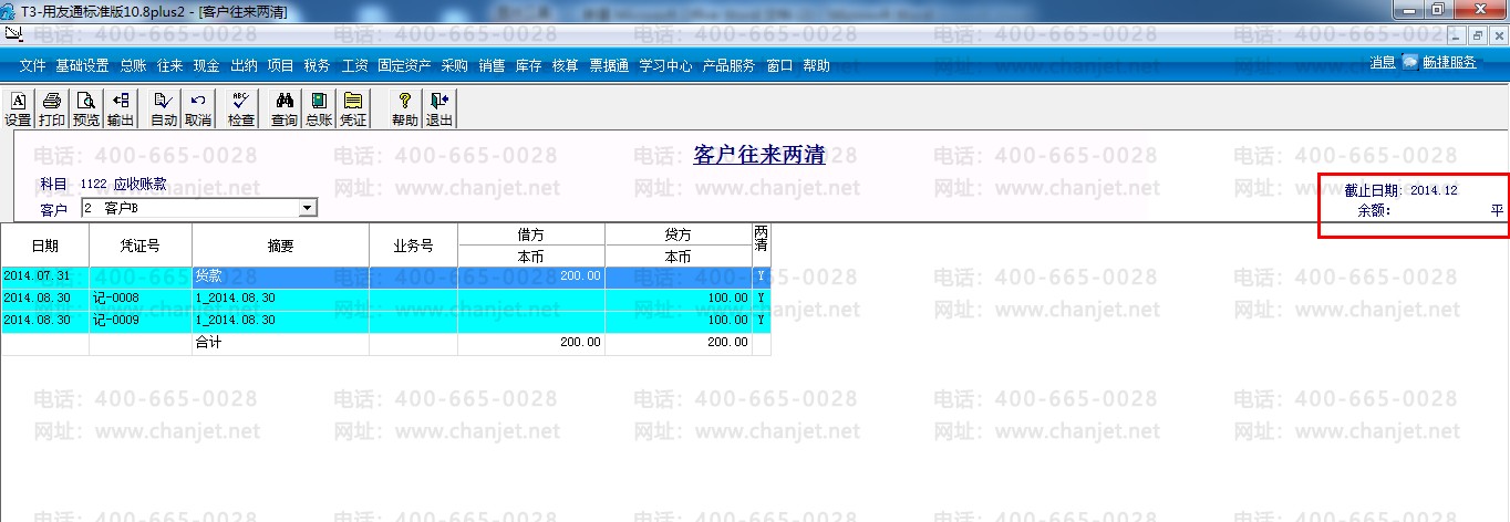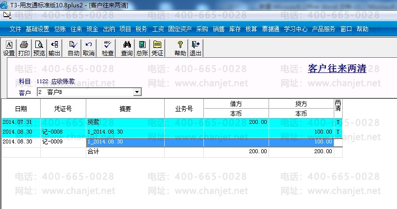 客户往来两清: