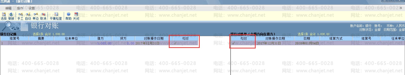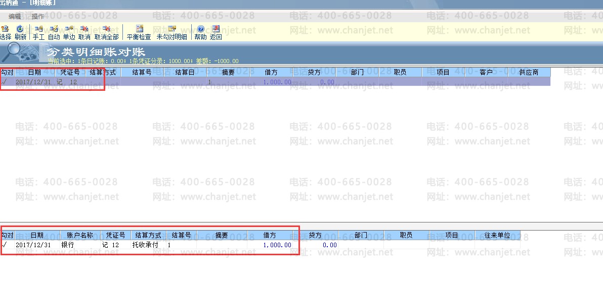 (2)检查是否对账