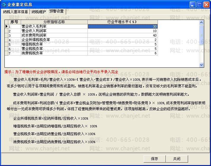 营业税税负率: 录入