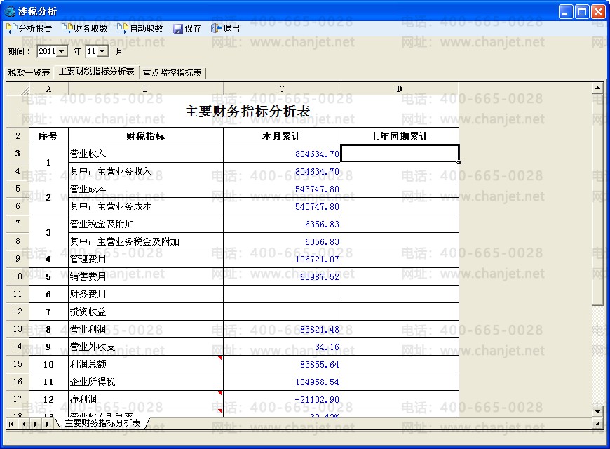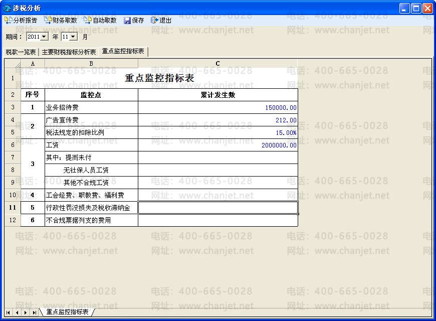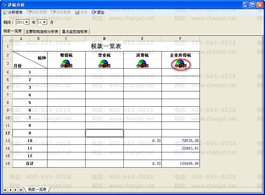 页签:《税款一览表》、《主要财税指标分析表》、《重点监控指标表》