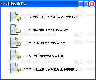 点击【消费税申报】图标后,系统根据【企业鉴定信息】中鉴定的申报项目来显示不同的报表。