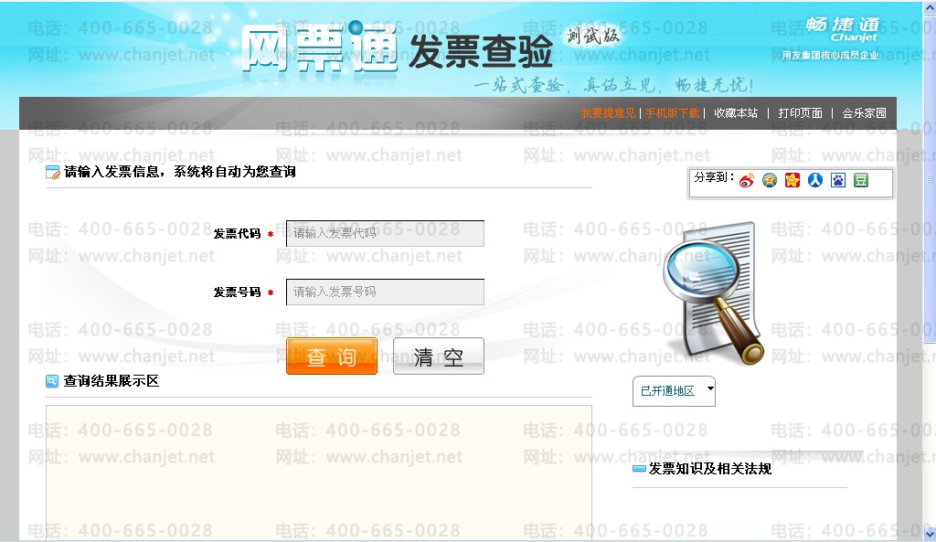 点击“发票查验”进入发票查验界面,需链接网络;按要求输入发票信息,点击“查询”,可查询发票的真伪,