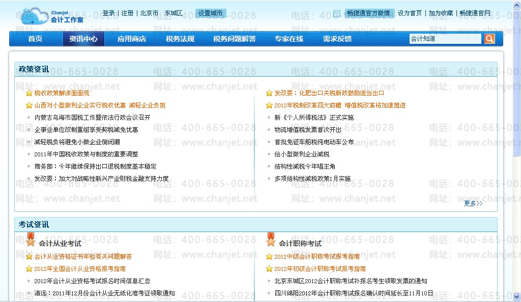点击“财税咨询”进入财税咨询界面,需链接网络;可查询财税方面的咨询,如:政策咨询、财税考试咨询