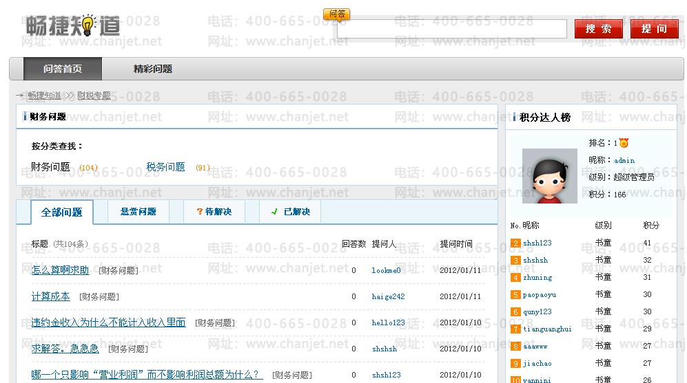 点击“财税问题”进入财税问题解答界面,需链接网络;可查询其他用户的财税问题,也可以提问。